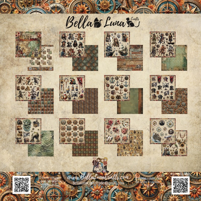 Bellaluna Cursed Pirates Recortables Collection 20.3x20.3 cm Bloc 12 feuilles double Face