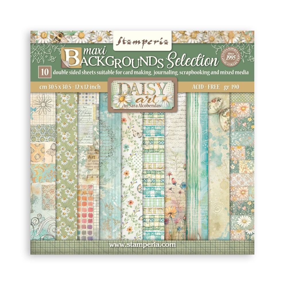 Stamperia Daisy Art Maxi Background 30.5*30.5 cm double Face Bloc 10 feuilles (12"X12")