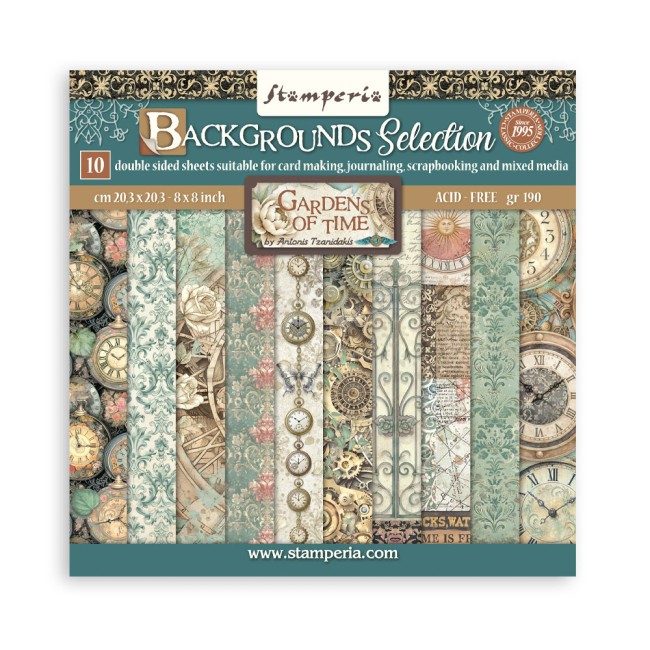 Stamperia Gardens of Time 20.5*20.5 cm double Face Bloc 10 feuilles (8"X8")