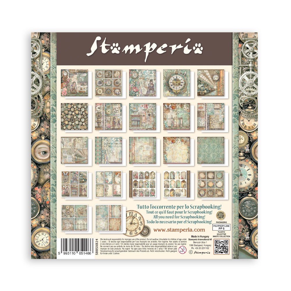 Stamperia Gardens of Time 20.5*20.5 cm simple Face Bloc 22 feuilles (8"X8")